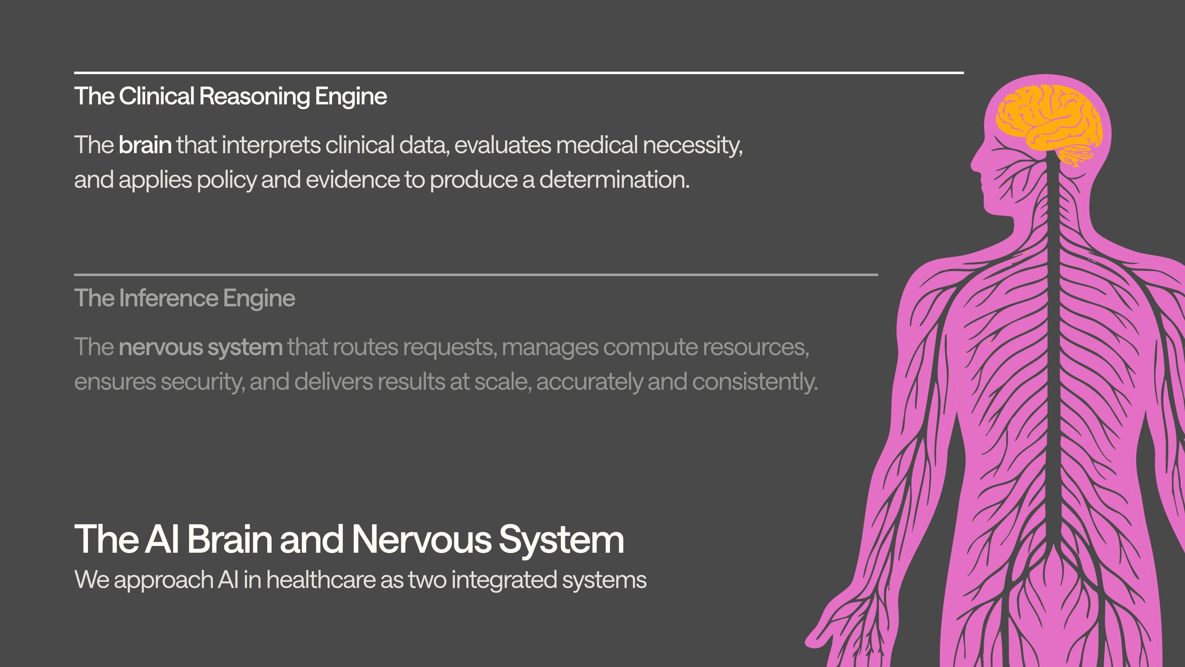 We’ve written about how we’re building a healthcare-native infrastructure (the "nervous system") separately, but here, let’s focus on what’s at the core: an AI brain that thinks like a clinician.